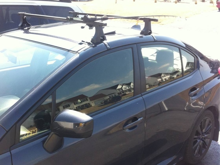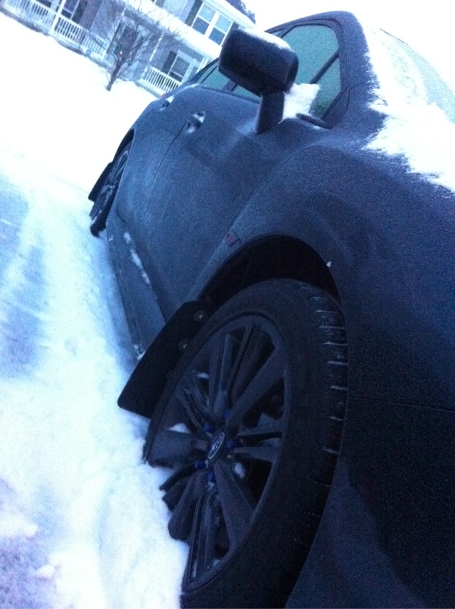 STi Wheels, STi front lip and side skirts, Rokblokz mud flaps, Rhino racks with mounted rod holders, smoked tail light overlays, emblem overlays, Sickspeed horns, STi headlights, OLM fog lights, Enkei T6S wheels